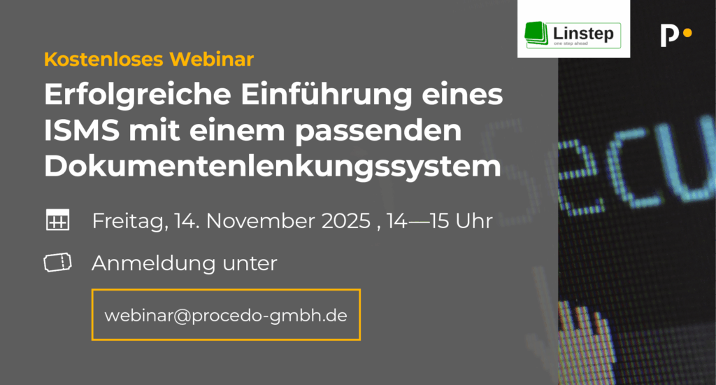 Dann ist unser Webinar „Erfolgreiche Einführung eines ISMS mit einem passenden Dokumentenlenkungssystem“ genau das Richtige für Sie!