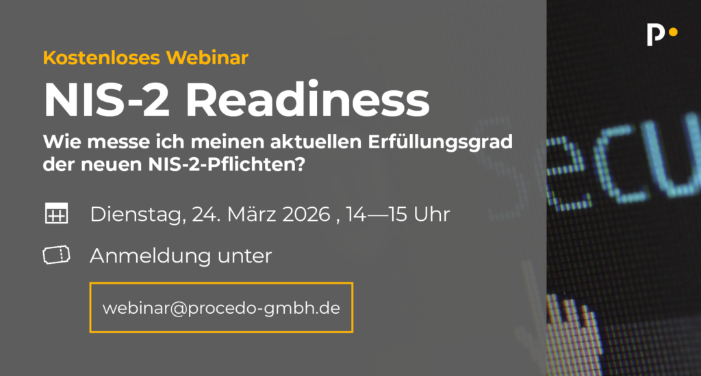 Dann ist unser Webinar „NIS‑2 Readiness: Wie messe ich meinen aktuellen Erfüllungsgrad der neuen NIS‑2‑Pflichten?“ genau das Richtige für Sie!